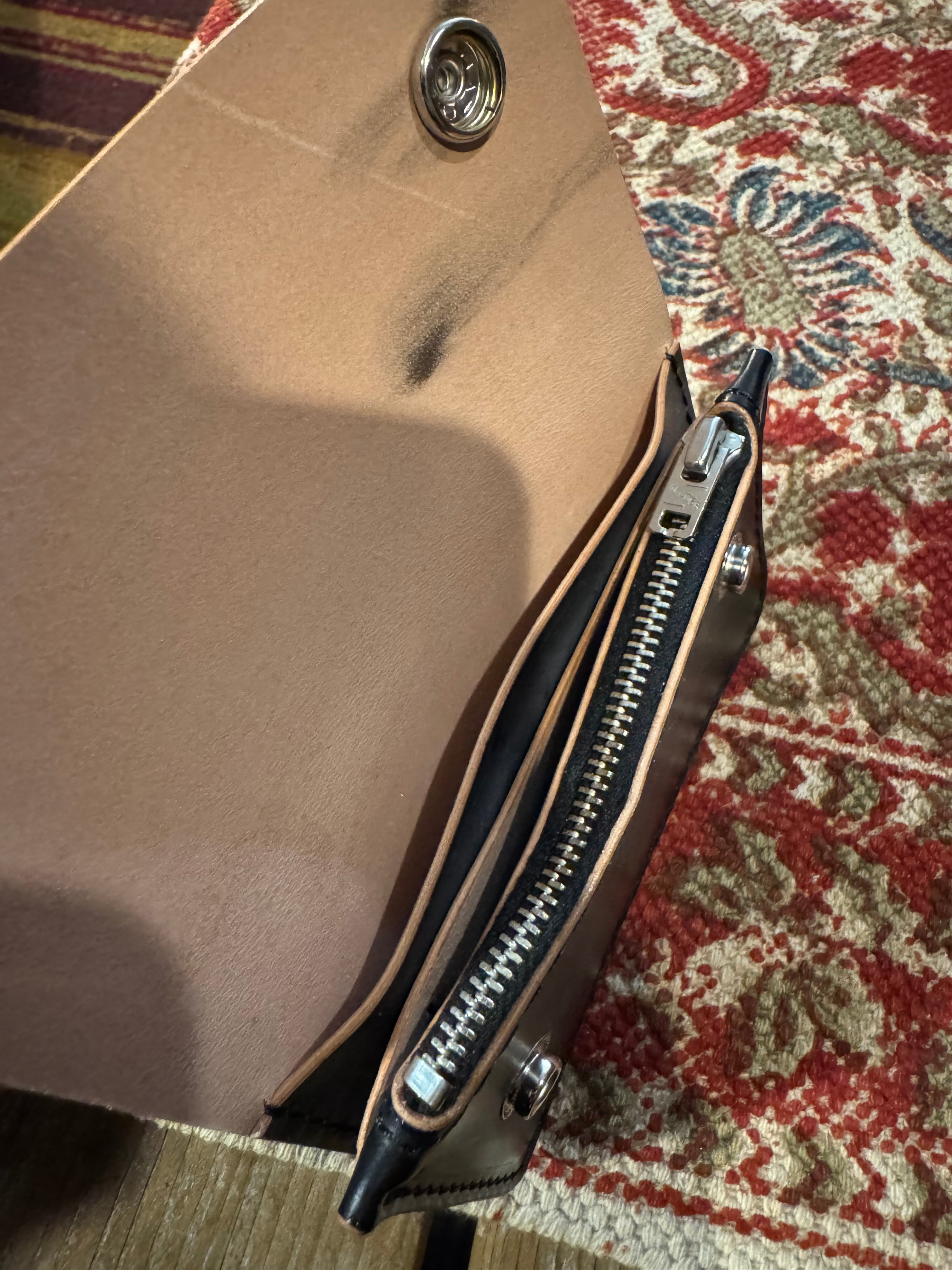 革は天然素材ですので、キズやシワ、トラといわれるスジ模様がある部位があります。また鞣しの際や製作段階についたキズや色むら、汚れ等ある場合があります。それらを活かした作品もございますので、ご理解の上お買い求め下さい。